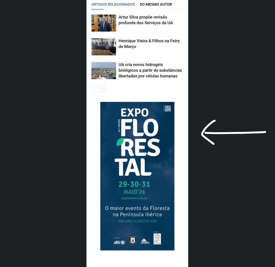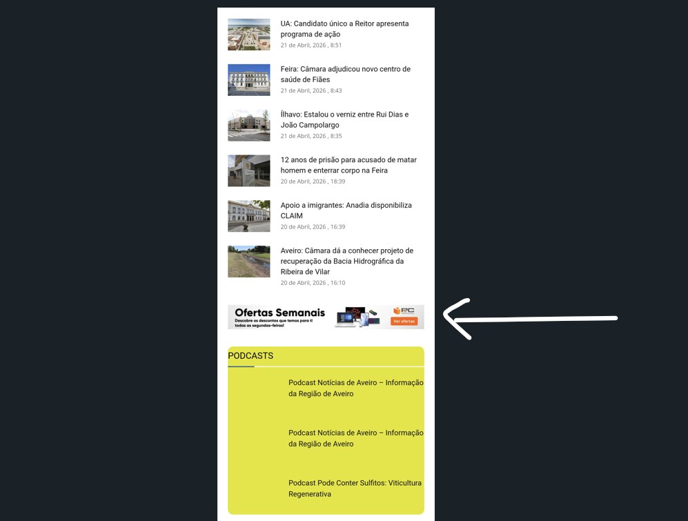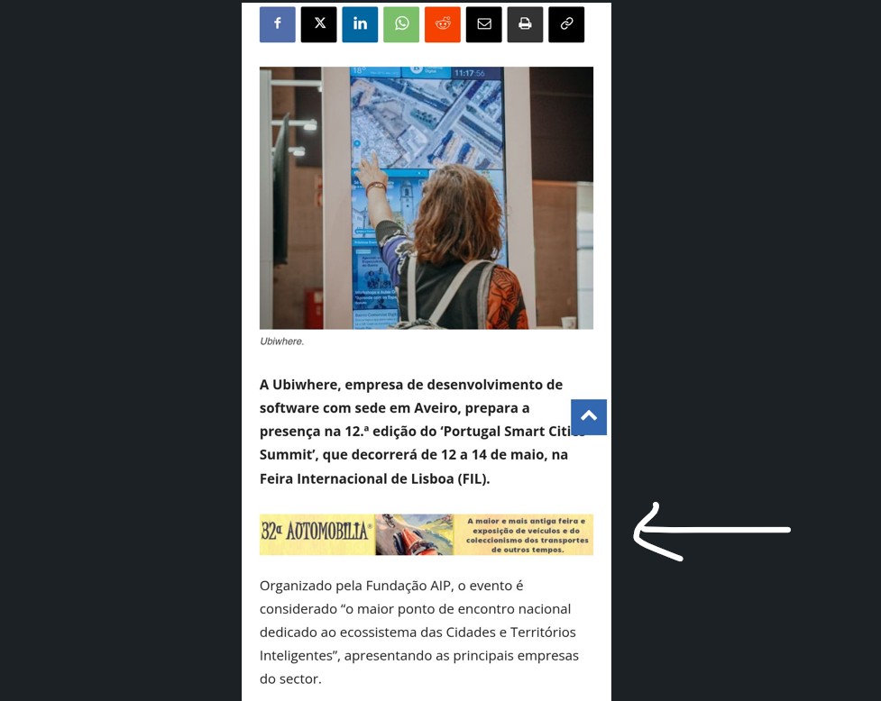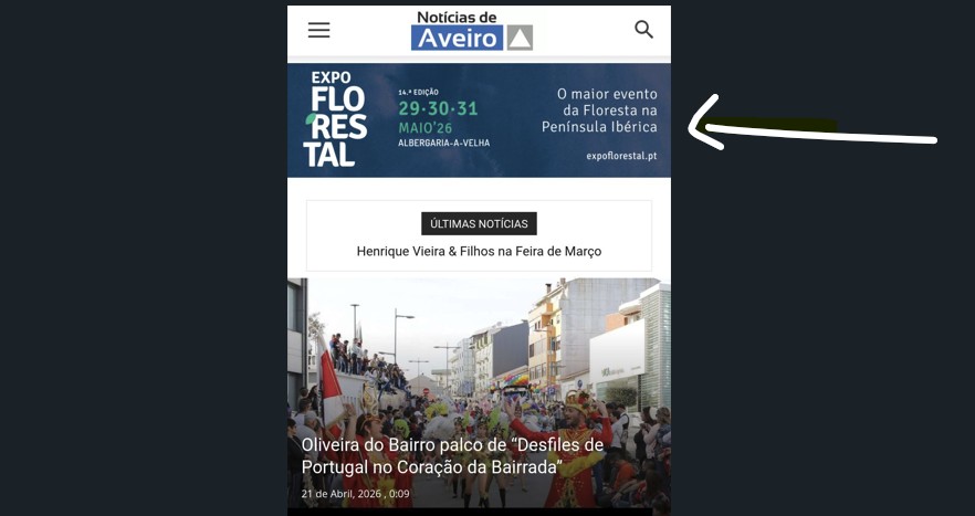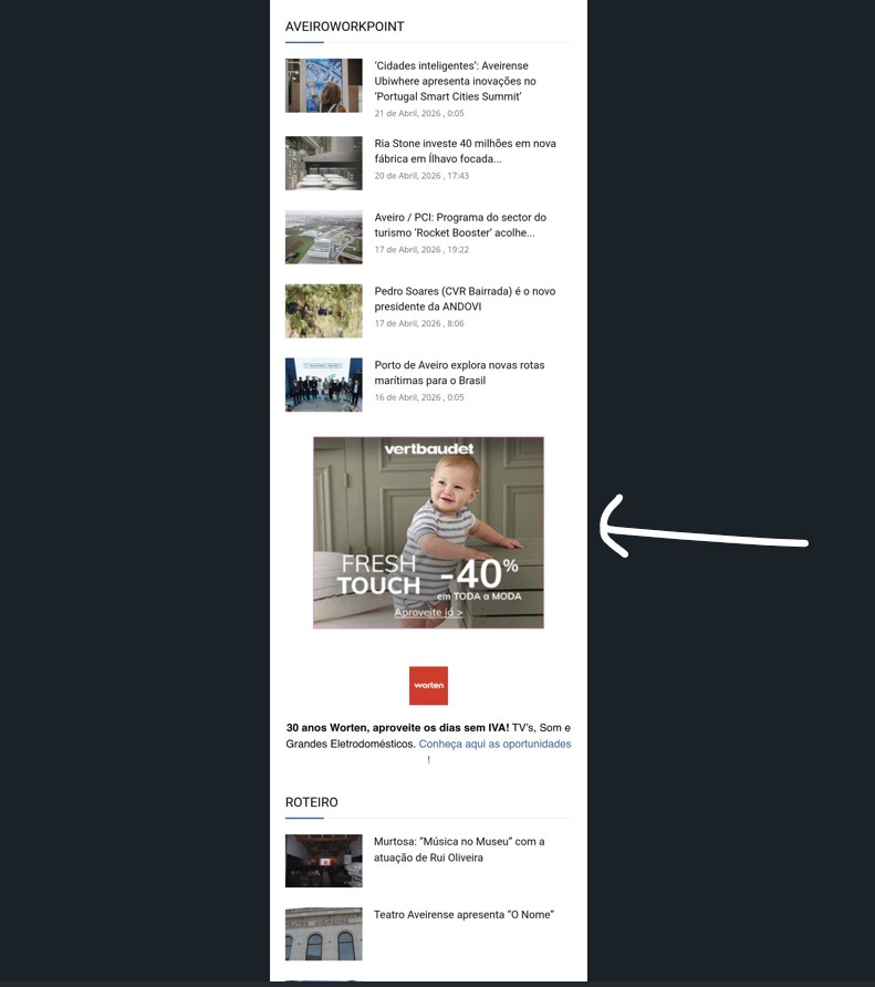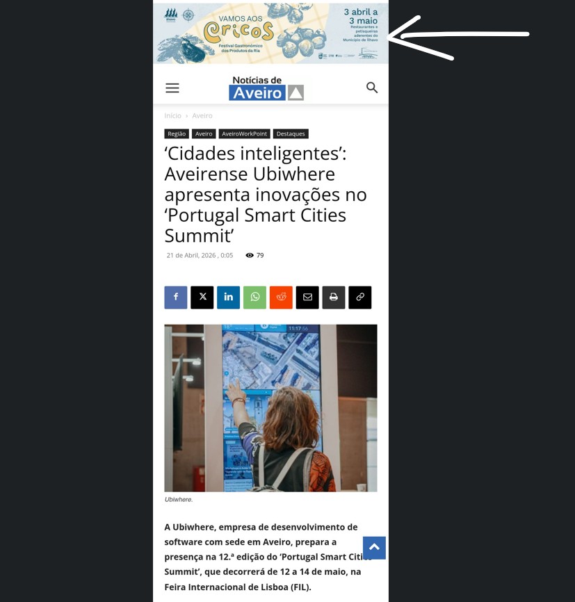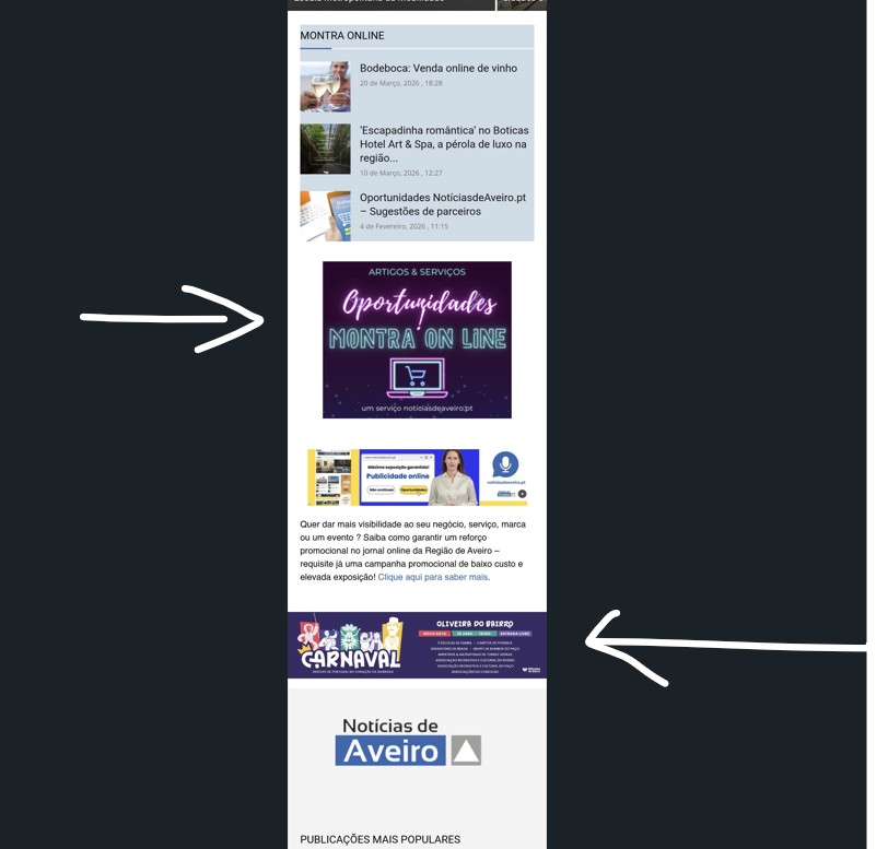 Localização e tamanho dos anúncios quando em visualização por mobile (dispositivos eletrónicos).